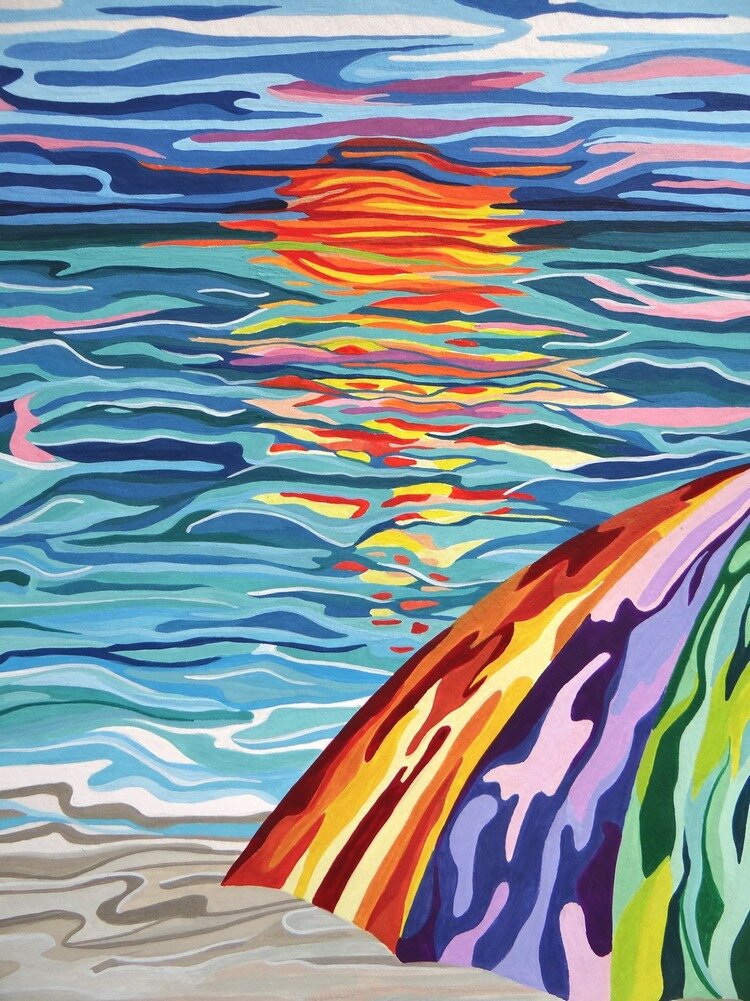As it turns out, DeNault’s best shot was the winning one, a colorful image in the gouache medium: A sun rising over Lake Huron.