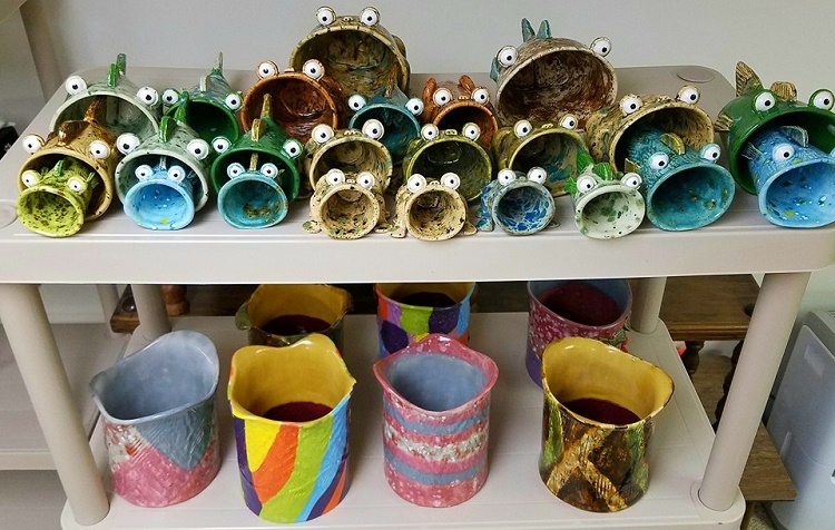 “Our ceramic work is done by using the slab technique,” Neal Hochstein says. “We do not use a potter’s wheel. We try to make everything very colorful. We want to you smile when you see it.”