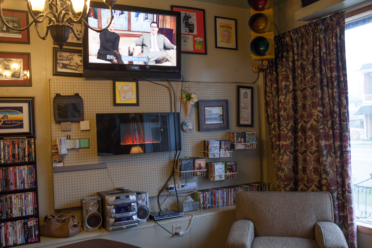 The 800-square foot former retail space is outfitted like a city studio, with a kitchen, dining area, living area, sleeping space, full bathroom, and bookcases with books, DVDs, games, and more. It feels surprisingly spacious, and comes equipped with several amenities, including a small dishwasher and, when a family arrives–a fridge and cupboards filled with food. If needed, DuMars can activate a wide network to obtain clothing, diapers, and almost anything else a family might need.
