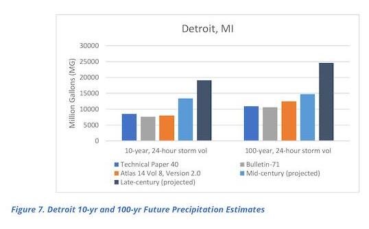 And in Detroit, a city that’s already struggling? The rainfall amount is expected to increase by a whopping 67 percent by mid-century, and 138 percent by the end of the century.