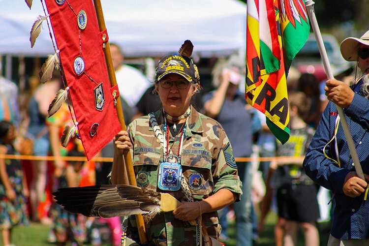 There are individuals designated to certain positions and roles based on tradition at the pow-wow as well. Whether it be an elder or prominent figure carrying the eagle staff, a particular dance, or another important position such as the Fire Keepers.