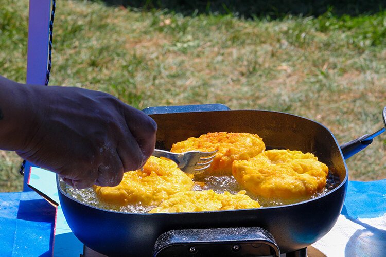 The pow-wow was host to several vendors each offering resources or cultural wares for those in attendance. There was traditional Native American food available such as wild rice soup which includes spices and root vegetables such as carrots. There were pow-wow regulars such as the buffalo burger, buffalo chili, and a fan favorite, fry bread. Traditional fry bread consists of creating a flat dough from wheat flour, sugar, and other ingredients that is fried in oil or lard. It can be eaten plain or with a variety of toppings such as honey or cinnamon sugar for a sweet treat, or savory items such as chili or taco ingredients.
