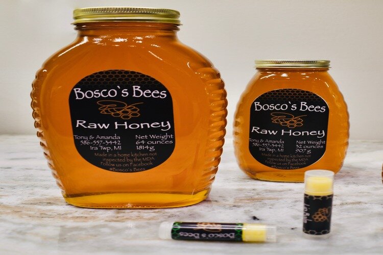 Anthony Bosco and his wife Amanda are co-owners of Bosco’s Bees, established in December 2018 when Amanda bought Anthony a beginner honeybee kit as a Christmas present. The couple caught the bug and purchased two prolific Italian nucleus hives in May 2019.