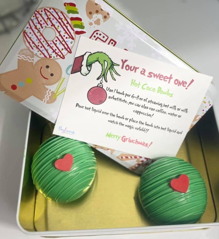 The menu consists of a variety of homemade treats, from traditional favorites like pies and cakes to some of her more unique creations such as the “Cheesecake Taco,” which consists of a special cinnamon-sugar shell filled with cheesecake and your choice of fruit topping. With the holiday season in full-effect, Woodley says her most popular item has been the “Hot Cocoa Bombs,” which come in traditional or gourmet. They are made with a spherical shell of thin chocolate and filled with cocoa powder, marshmallows, and other sweets such as peppermint pieces and other goodies. You place the hot cocoa bombs in hot milk or a beverage of your choosing and watch as the chocolate bomb dissolves, revealing the sweet contents inside.