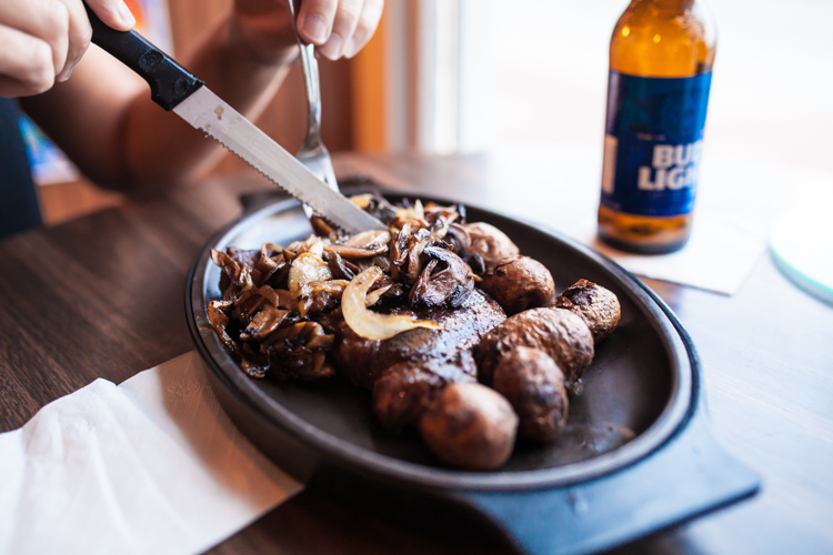 What to Order: 14-ounce rib-eye, coconut shrimp, nachos