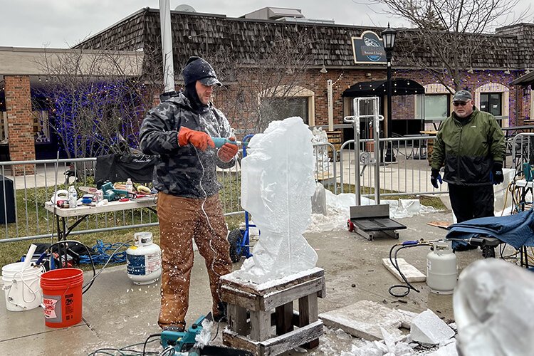 Katlin Pfroffer and Mark Slessora were a few of the talented ice sculptors creating icy art at the annual Icy Bazaar held last month in downtown St. Clair.