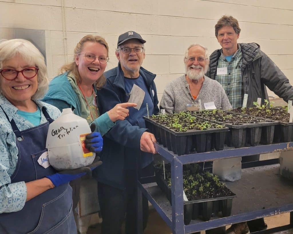 Volunteers participate in a native plant seedling up-potting event with Project Grow Ann Arbor. Courtesy.