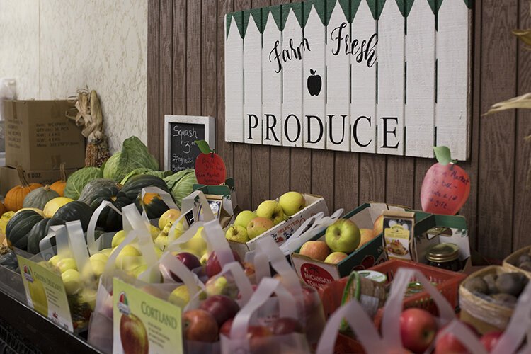 In addition to apple varieties such as McIntosh, Honeycrisp, Rome, Paula Red, Golden Delicious, Jonathan, Mutsu, and Winesap, the farm grows other fruits and vegetables including sweet corn, squash, and pumpkins.