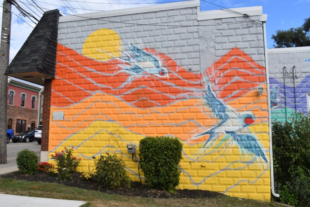 Art Nook connects folks to downtown businesses and showcases a colorful mural by artist Kevin Gano.