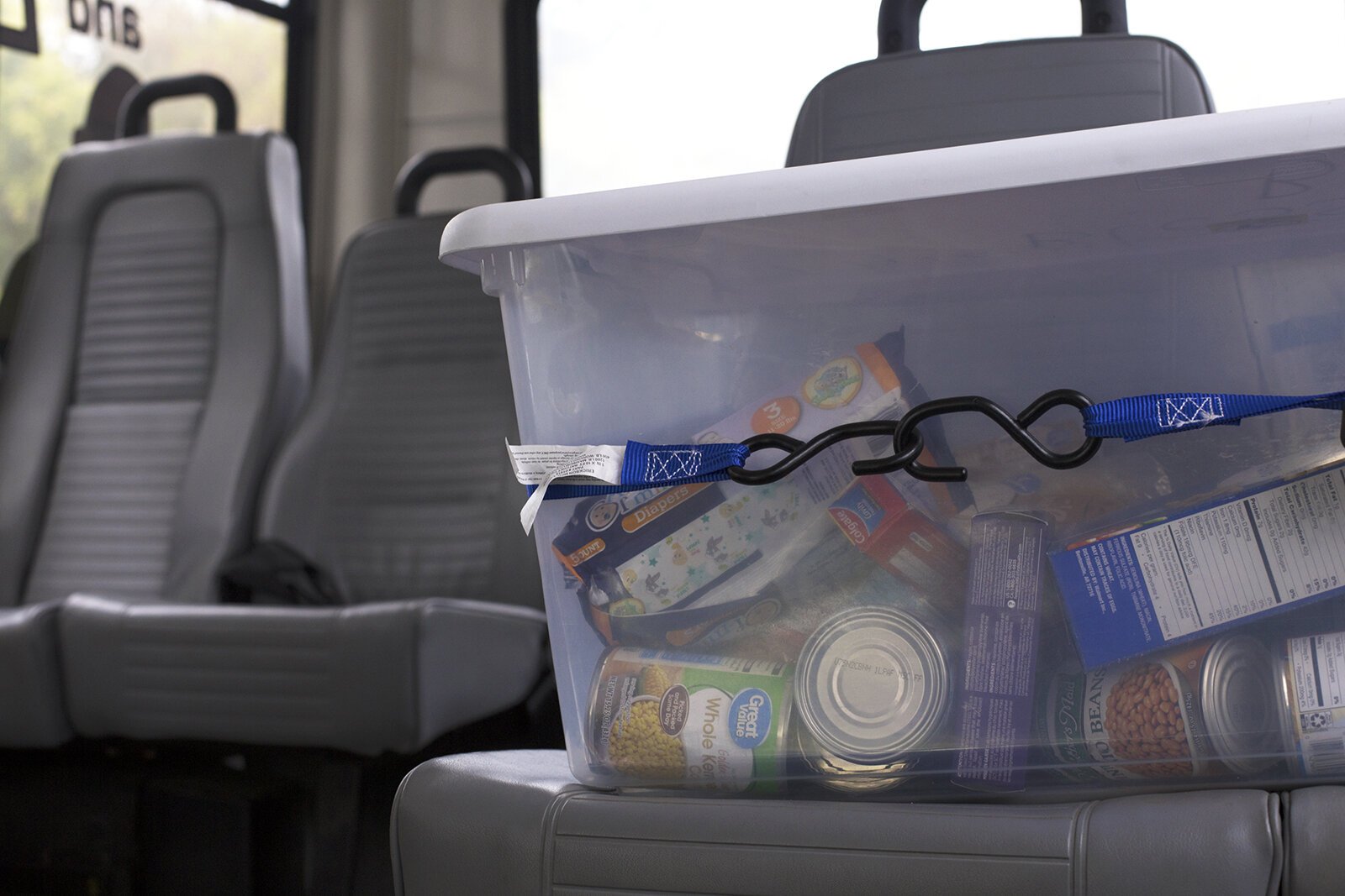 “We had been talking about new distribution methods to get the food to those with limited access and thought what if we could team up with the public transportation authority? We had such a surge in need for food during the pandemic and needed to find another way to get food to the people who couldn’t get to the pantries or pop-up locations,” Robinson says. “So Karly and I thought it seemed a natural fit to put a Thumb Blessing Box on one of the Thumbody Express buses and have the bus act as a mobile distribution site.”